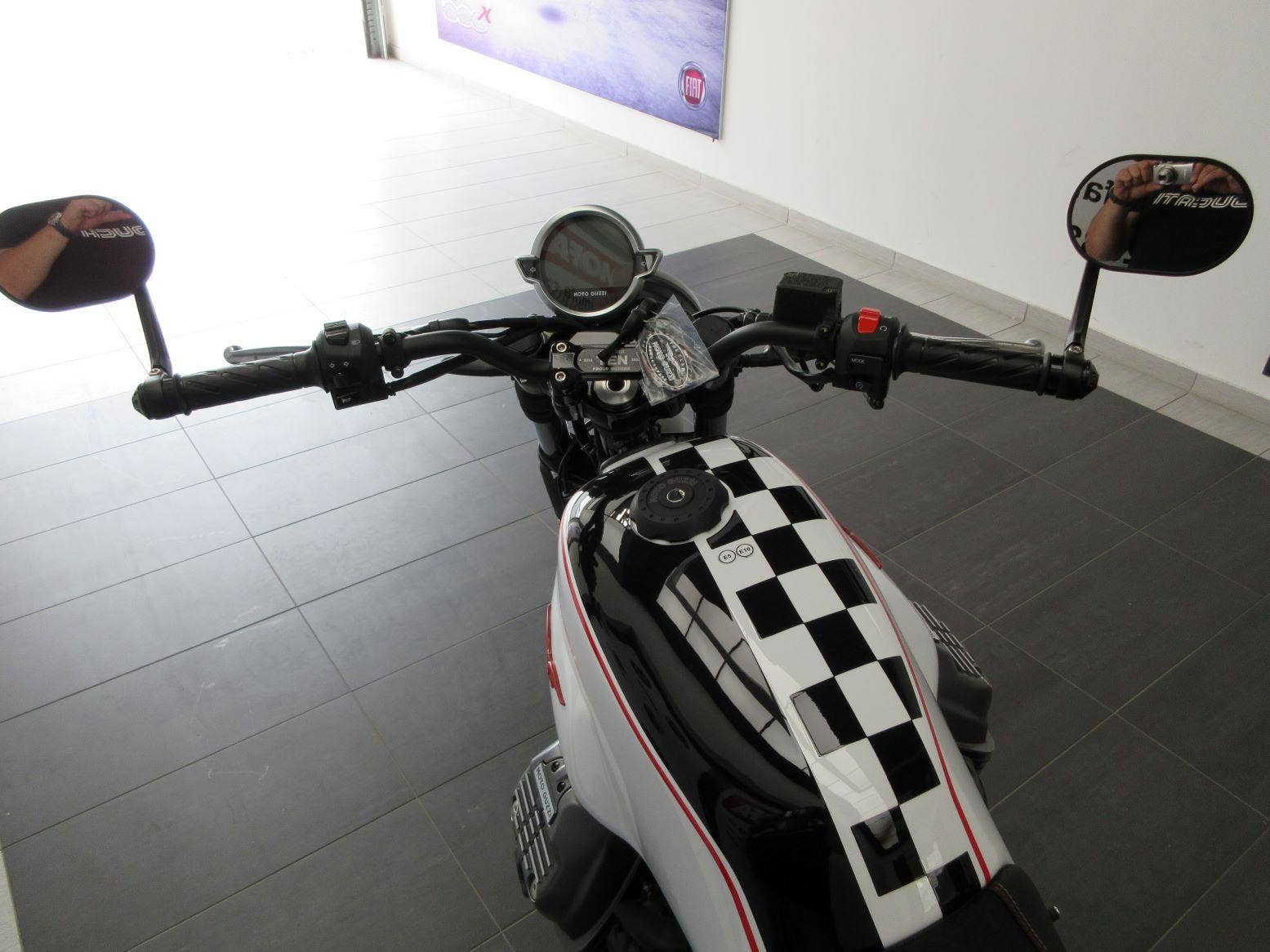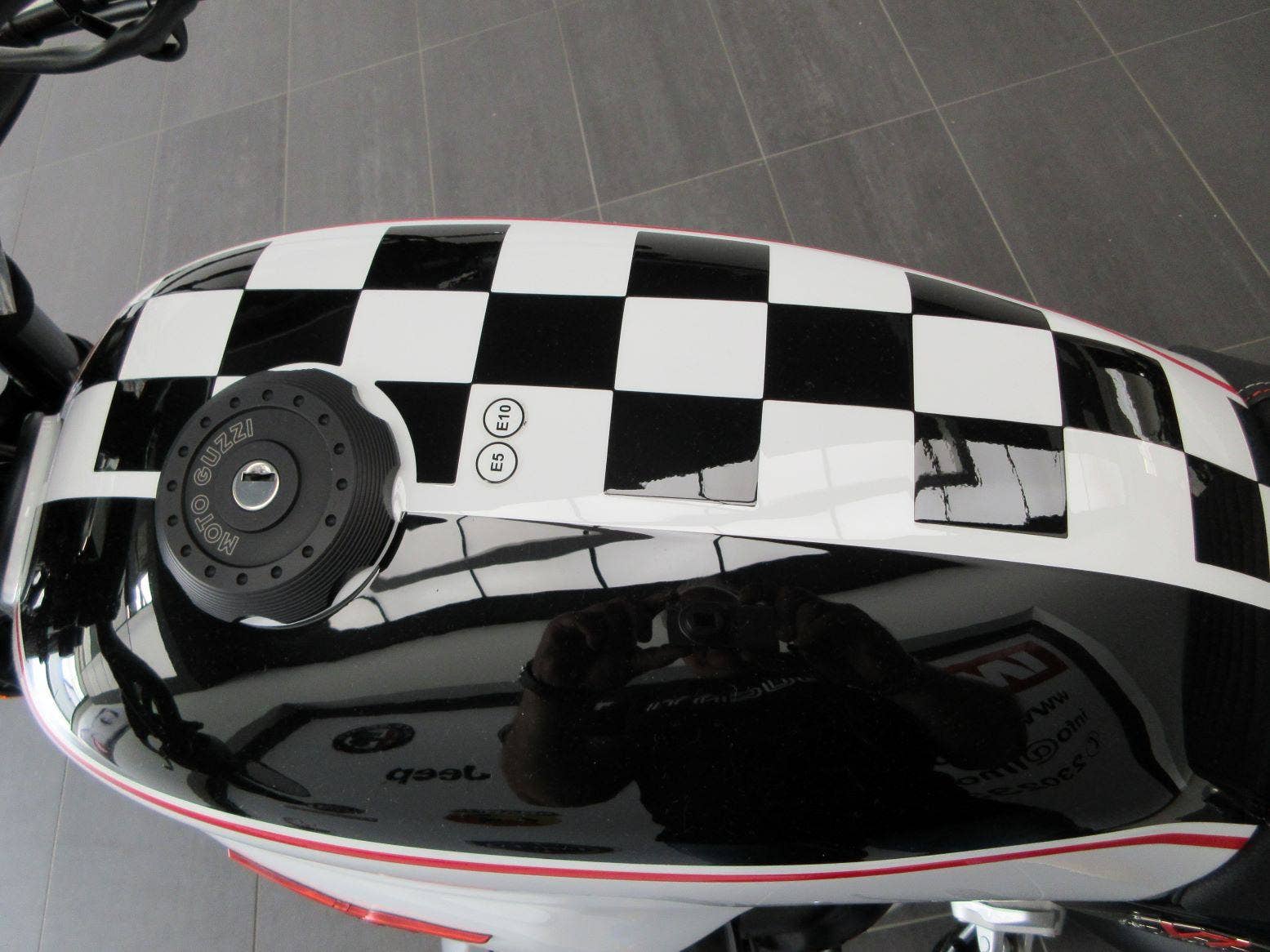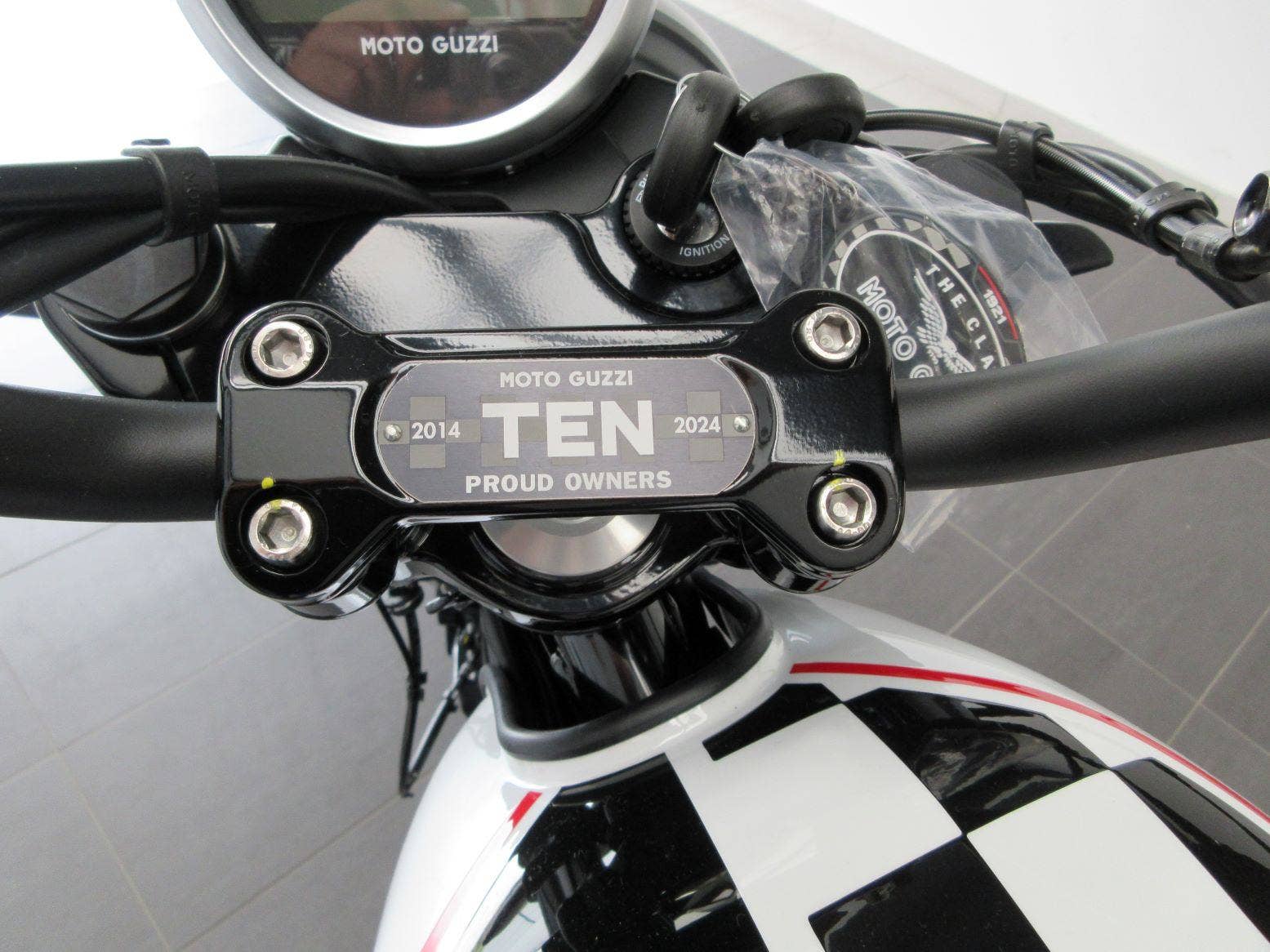 Asi nejhezčí V7 za poslední dobu - limitovaná edice k 10 letům značkového klubu Moto Guzzi! Černobílá šachovnice vyvedená v perleťovém laku, koncová zrcátka, červené pružiny a vrcholem jsou sportovní výfuky ARROW! Samozřejmostí jsou LED světla, LCD displej s palubním počítačem, ABS, kontrola trakce a spousta dalších drobností vykreslující vyjímečnost tohoto modelu - třeba plaketa na řídítkách.